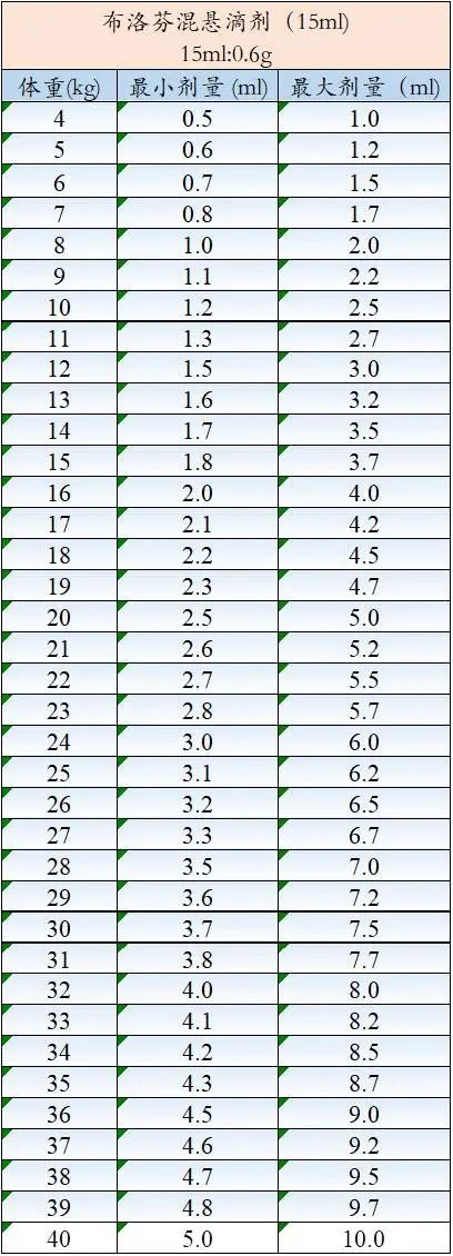 美林的正确给药剂量可参照表1中用法用量,根据孩子的体重,计算出美林的需要量。也可以按照孩子的体重对照表2、表3对应查找对应的服用剂量范围,根据孩子的发烧和继往用药情况,适当调整药物用量。